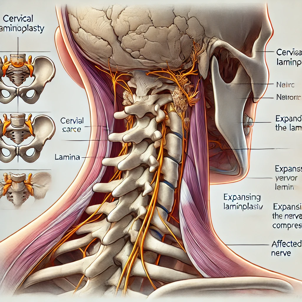 경추후궁성형술은 척추 신경 공간을 확보하기 위해 후궁(척추뼈의 뒤쪽 부분)을 일부 절개하거나 열어서 고정하는 방식으로 이루어집니다. 후궁 제거와 달리 후궁을 완전히 제거하지 않고 공간만 늘리므로, 척추의 안정성을 유지하면서 신경의 압박을 완화할 수 있는 장점이 있습니다.