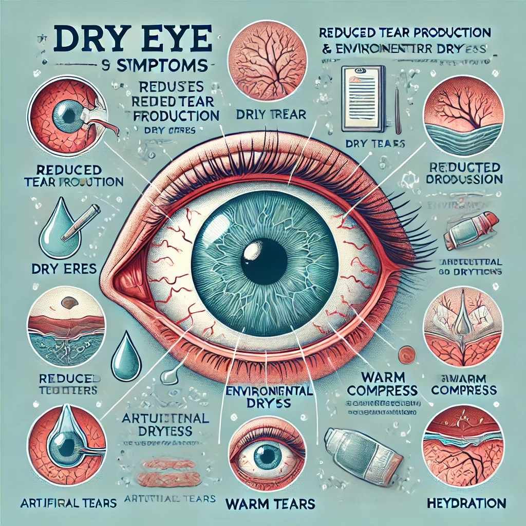 - 눈물 분비가 부족하거나 눈물이 빨리 증발하는 경우