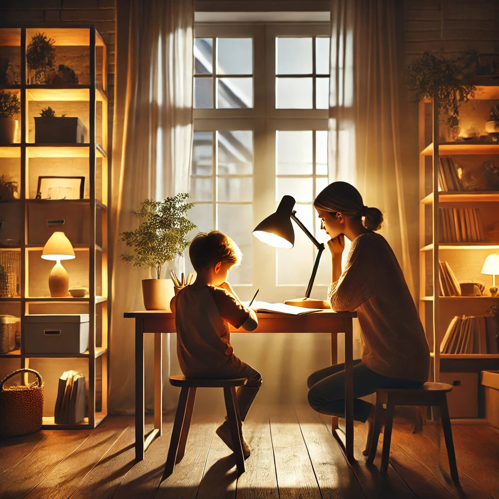 - 낮에는 자연광을 최대한 활용하되, 저녁에는 스탠드와 방 조명을 함께 사용하는 것이 좋습니다. 방 조명 없이 스탠드만 사용할 경우 눈의 대비 적응력이 저하될 수 있습니다. 방 전체를 균일하게 밝게 유지하면서 스탠드 빛을 보조적으로 사용하는 방식이 이상적입니다.