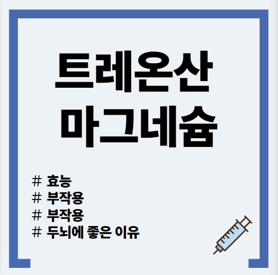 이 글에서는 트레온산 마그네슘의 효능, 복용법, 부작용, 다른 마그네슘과의 차이점, 추천 복용 대상 등에 대해 자세히 설명드립니다.